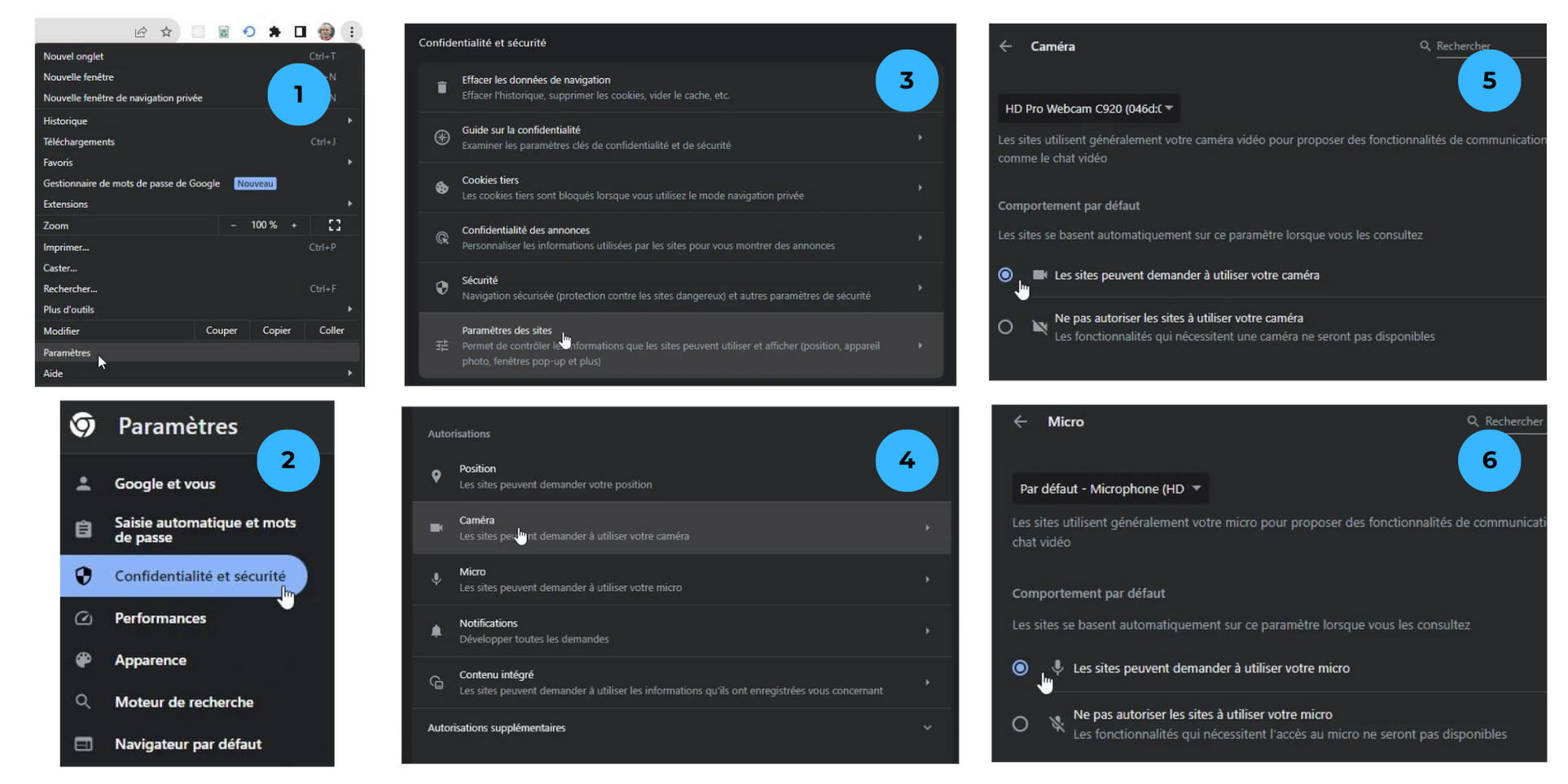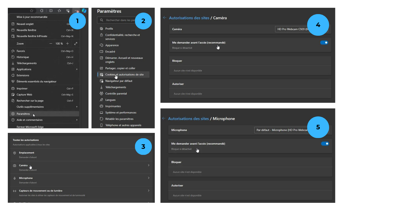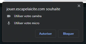 Assurez-vous que votre navigateur n'est pas configuré par défaut pour refuser l'accès à la caméra et au microphone.